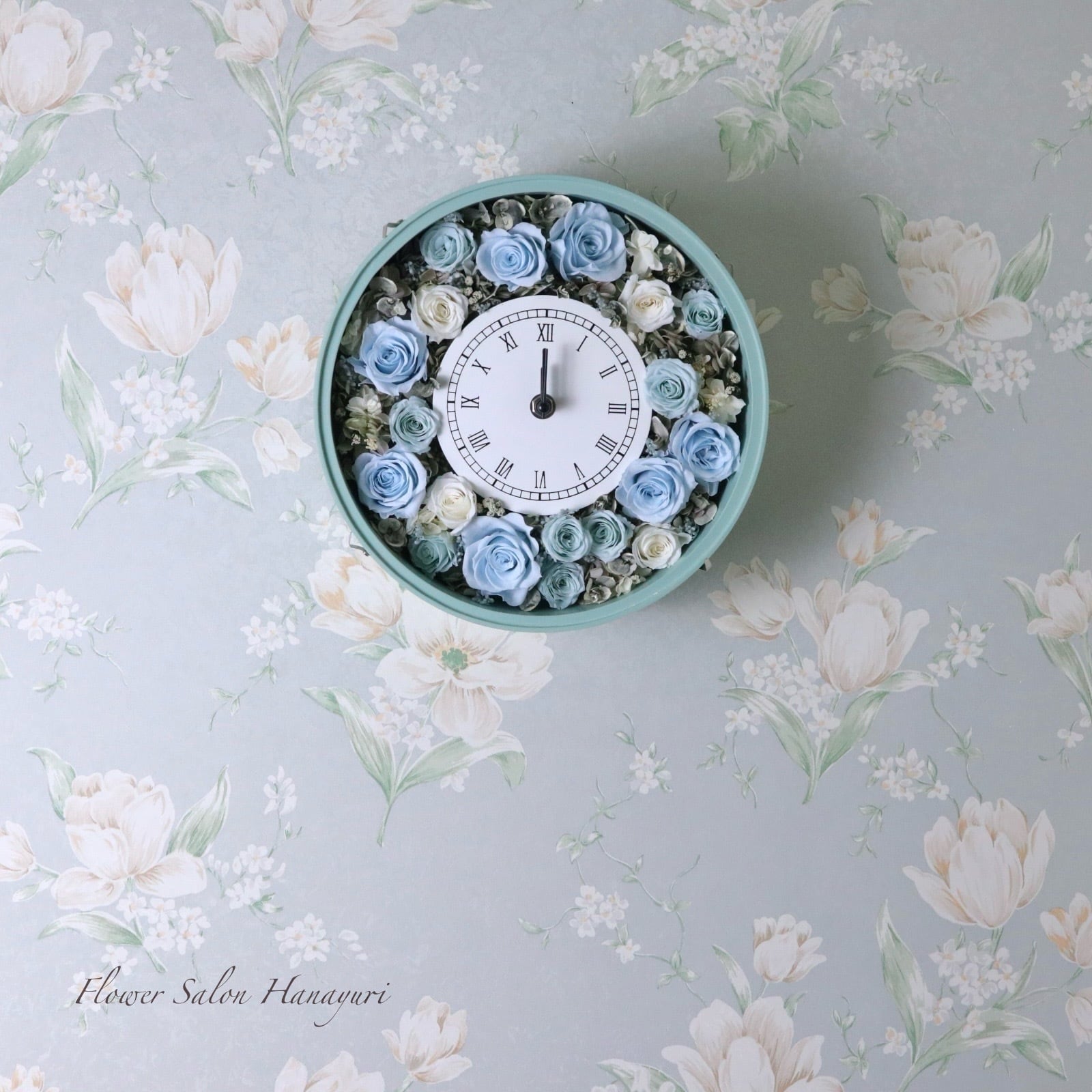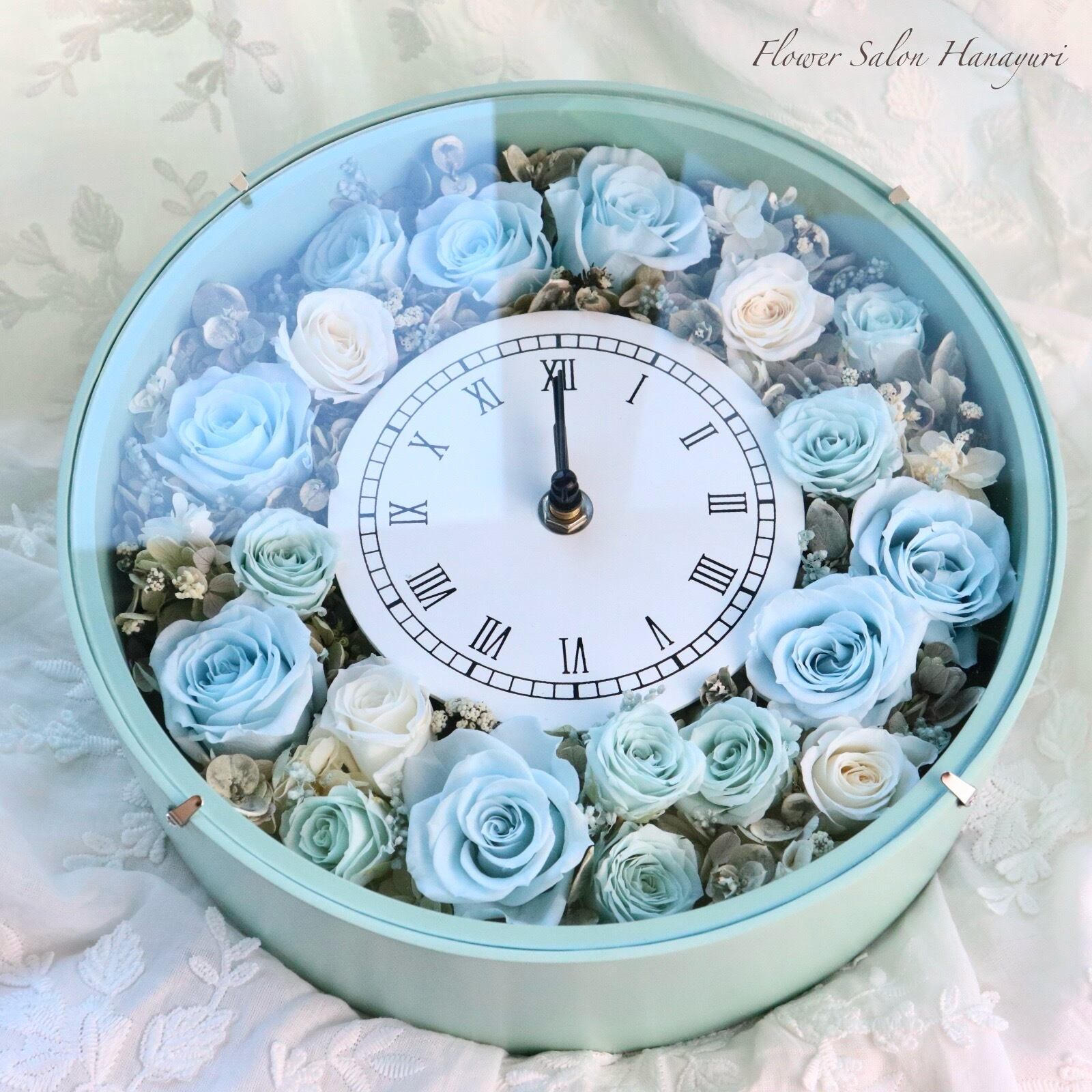 プリザーブドフラワー 花時計 ブルーグリーン ミントグリーン 誕生日 記念日 結婚祝い 開店祝い 周年記念 模様替え 新生活 退職祝い 就職祝い 花ギフト 贈り物