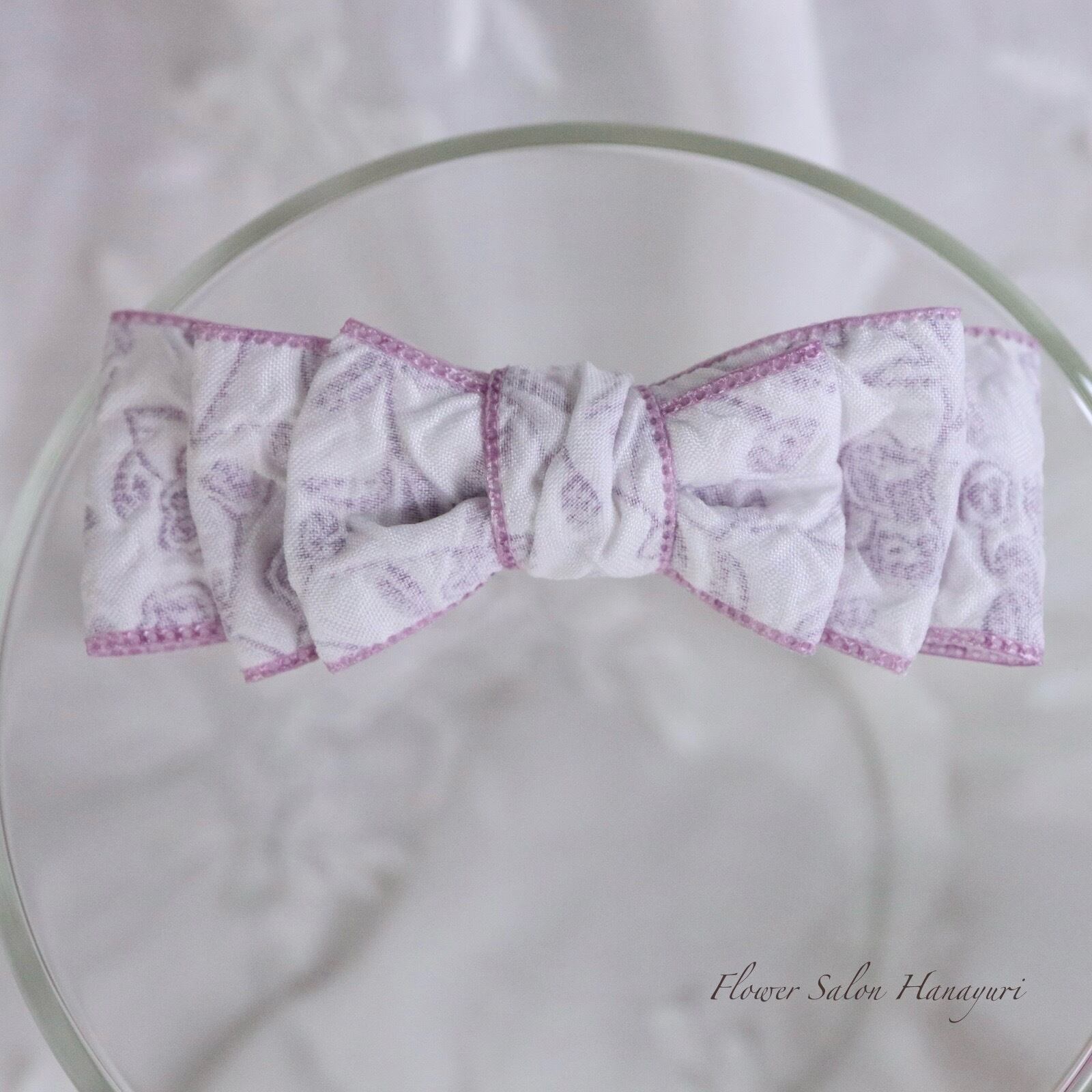 エンボス加工の紫エッジの高級感のあるリボンを添えました。