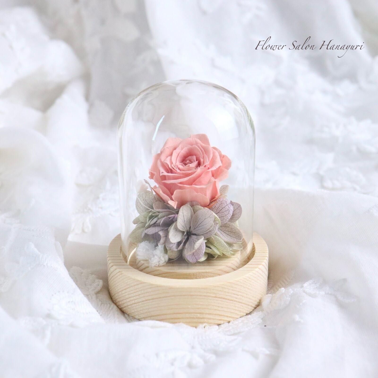 プリザーブドフラワー ミニボトルフラワー ピンク ガラスドーム ミニチュア プチギフト お礼 ペットのお悔やみ 仏花 記念日 誕生日 お祝い フラワーギフト 選べるお悔やみオプション