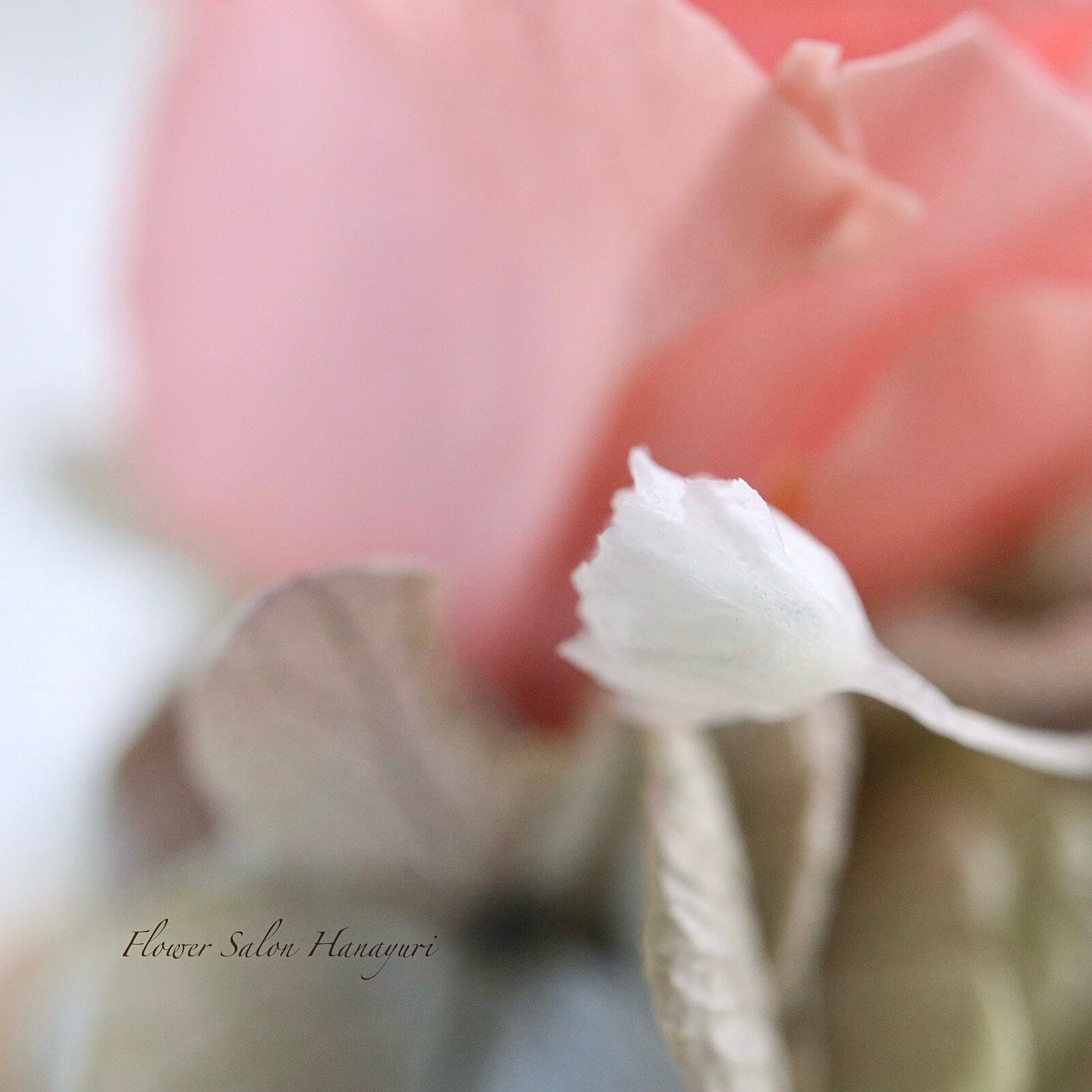 生花のようにみずみずしく、繊細なお花です。お花にひびや切れ目、実物など落ちやすいものもございますが、プリザーブドフラワーの特性上ものですのでご了承くださいませ。