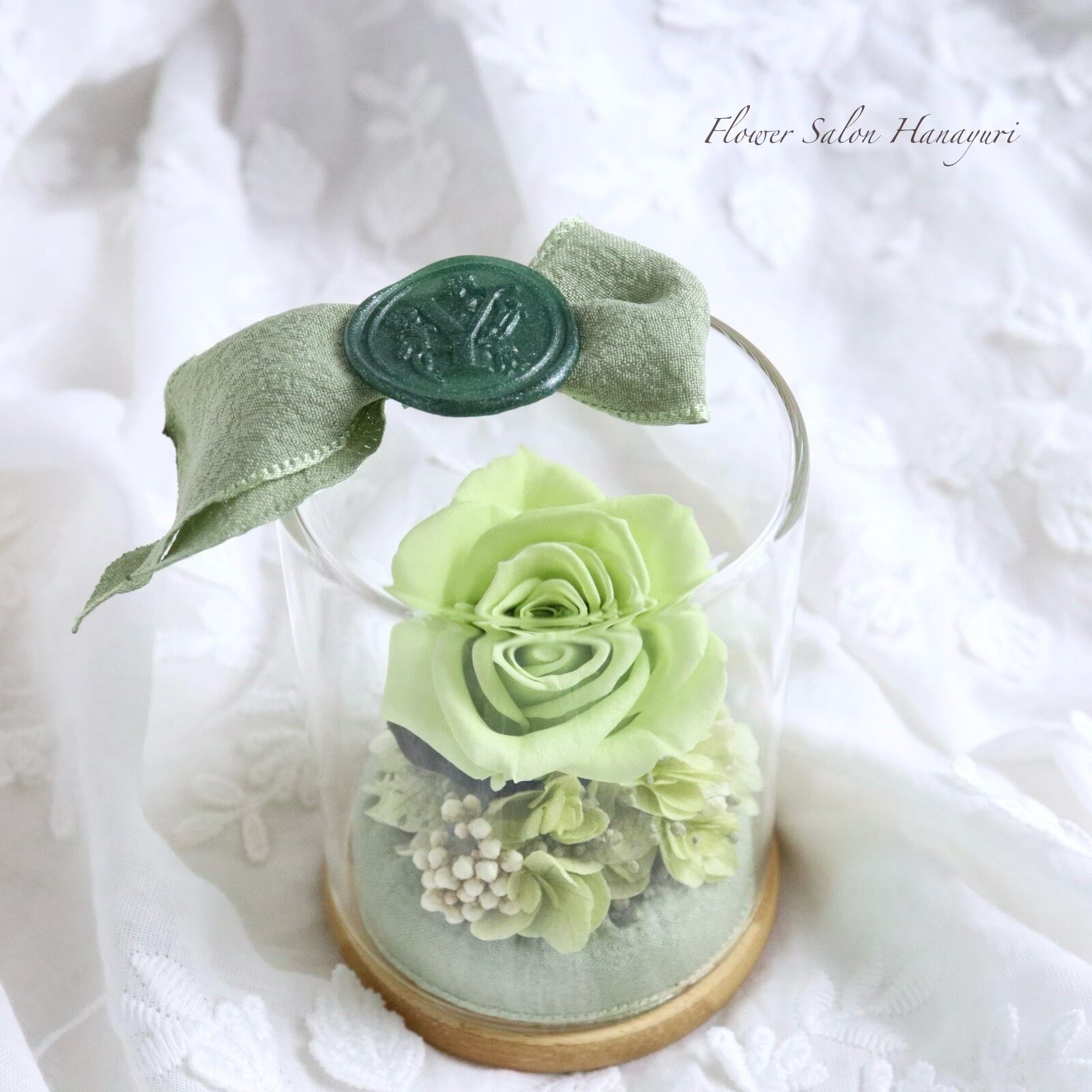 プリザーブドフラワー ボトルフラワー ガラスドーム グリーン 記念日 誕生日 お祝い フラワーギフト お礼 選べるお悔やみオプション