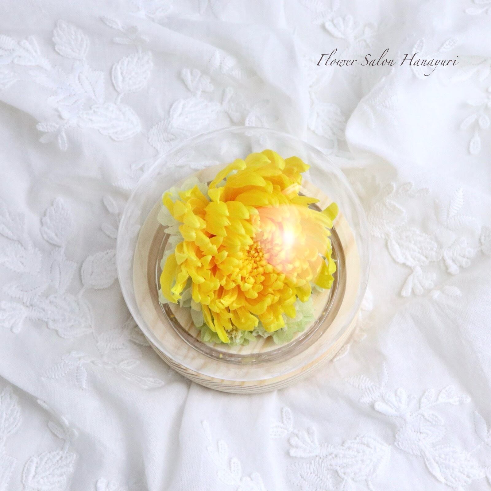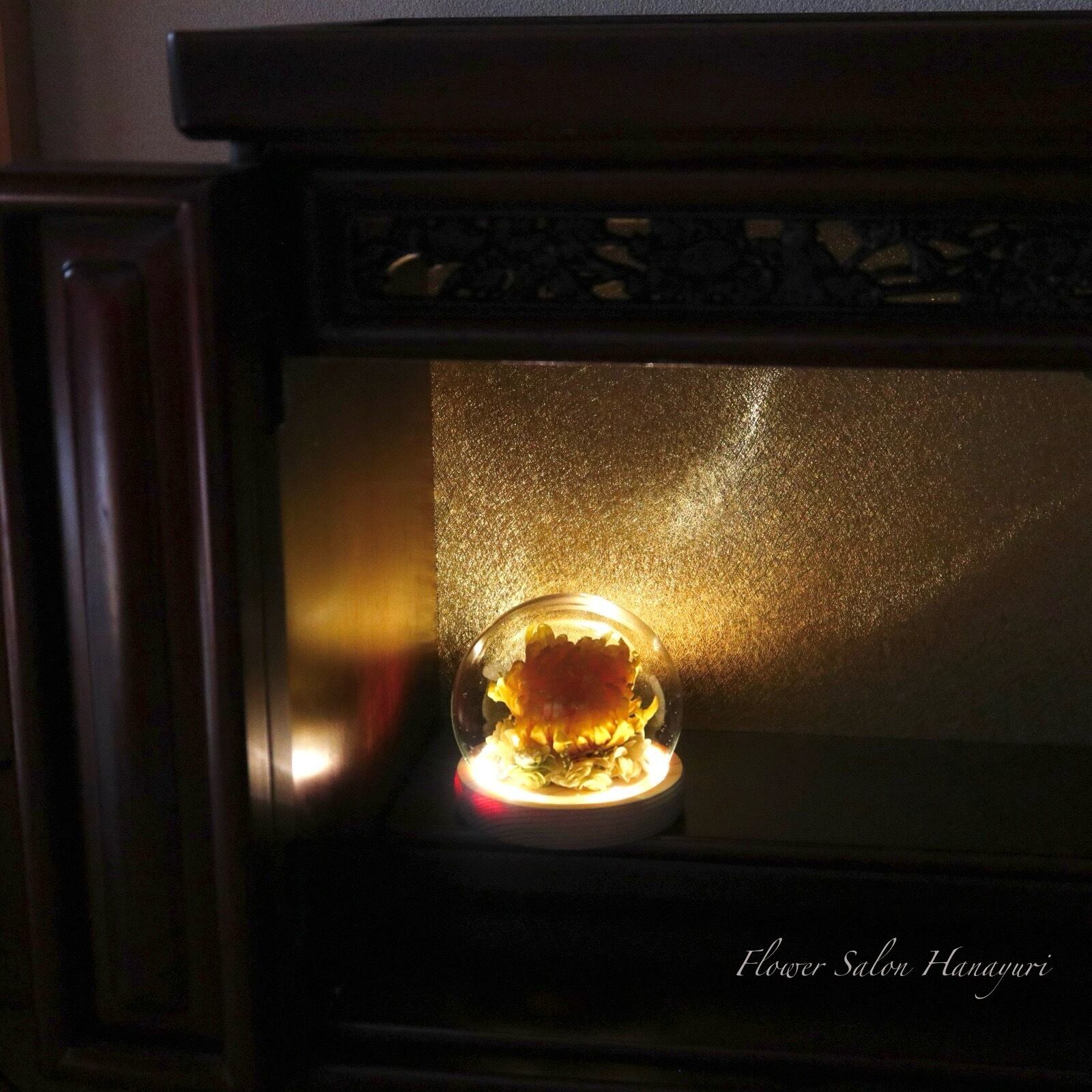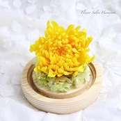 プリザーブドフラワー LEDライト付き ガラスドーム 輪菊 黄色 仏花 選べるお悔やみセット