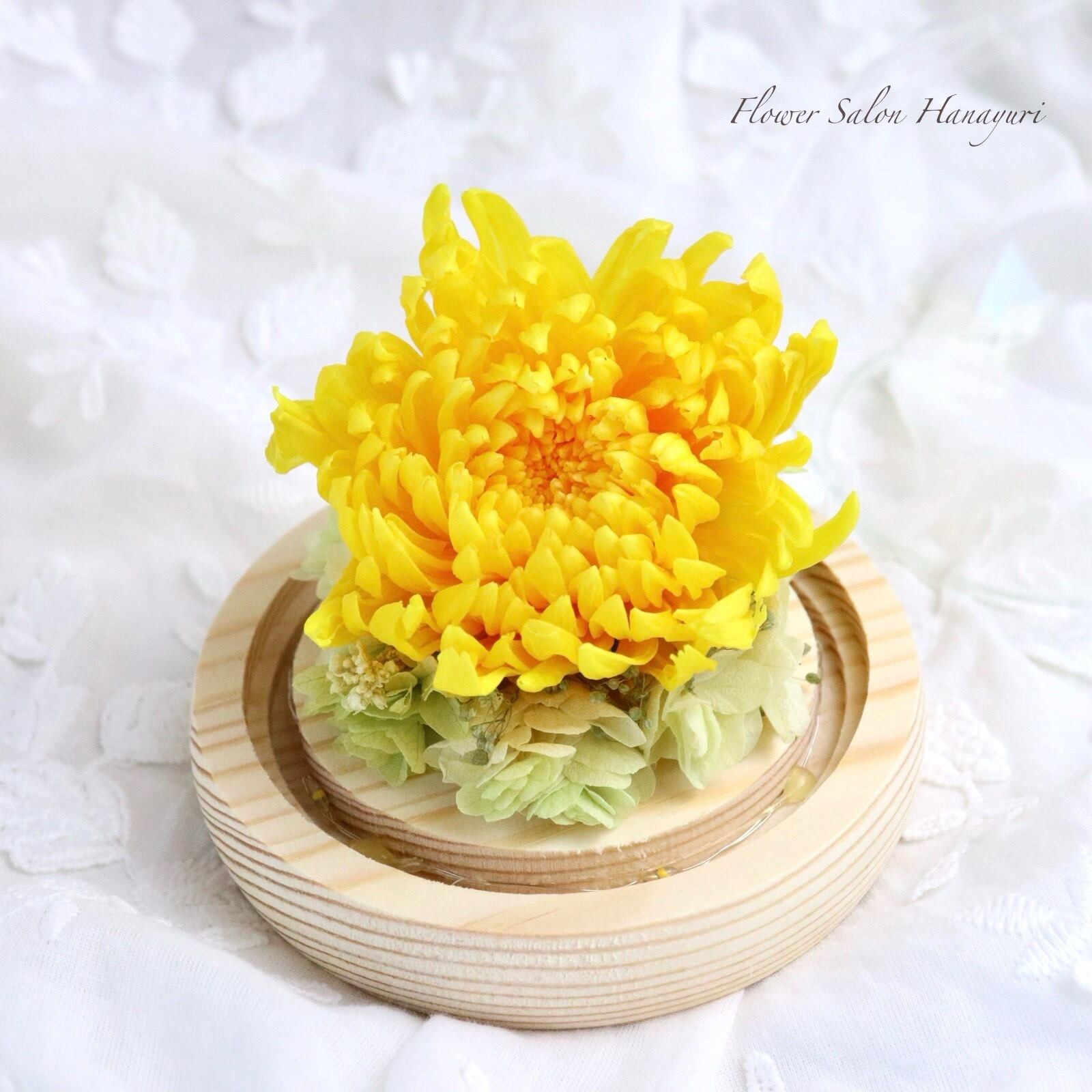 清楚で気品ある花姿の輪菊を生花のような美しい姿にするために丁寧に開花いたしました。