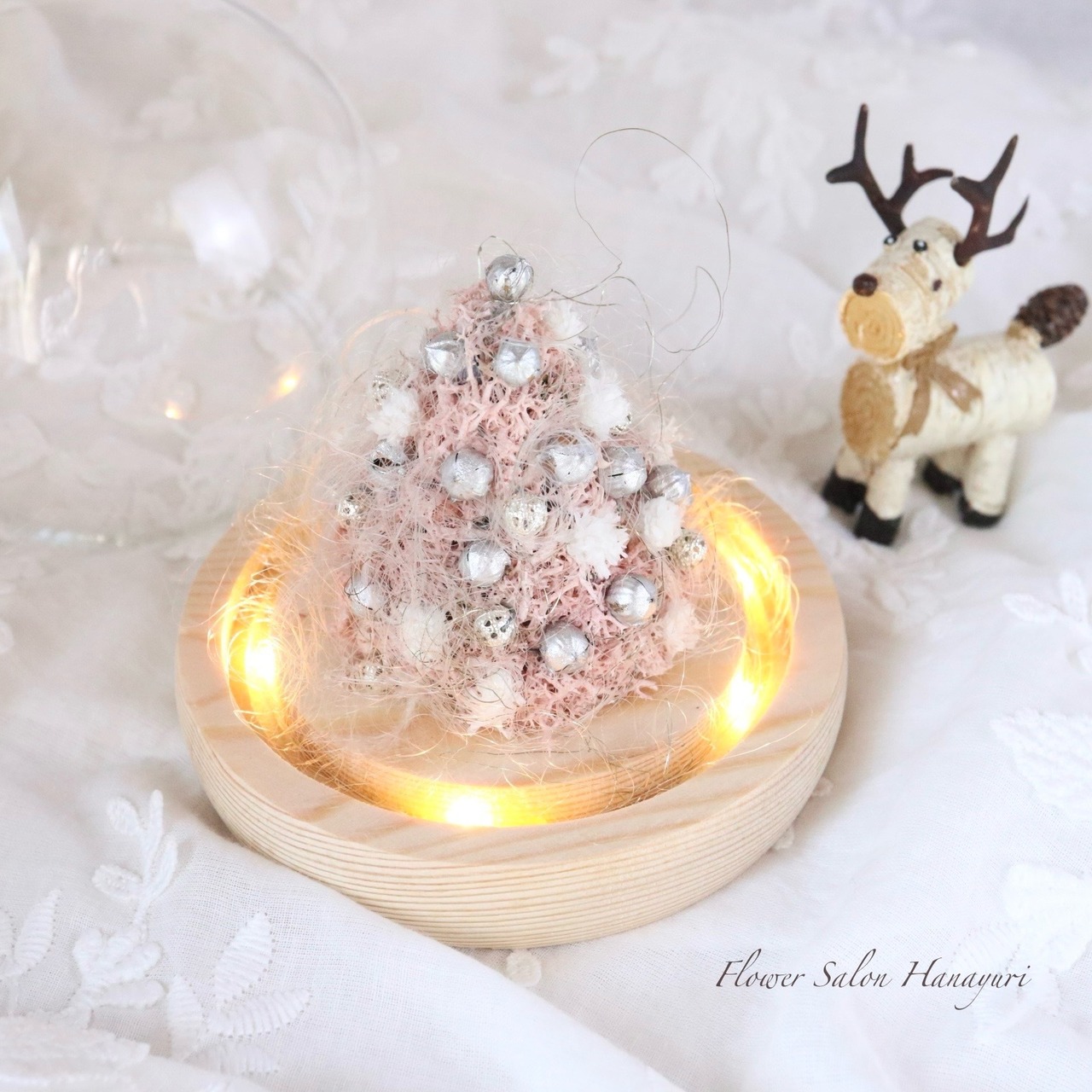 プリザーブドフラワー ピンクツリー ガラスドーム LEDライト クリスマス プレゼント 花ギフト 贈り物 お祝い 記念日 ナチュラル