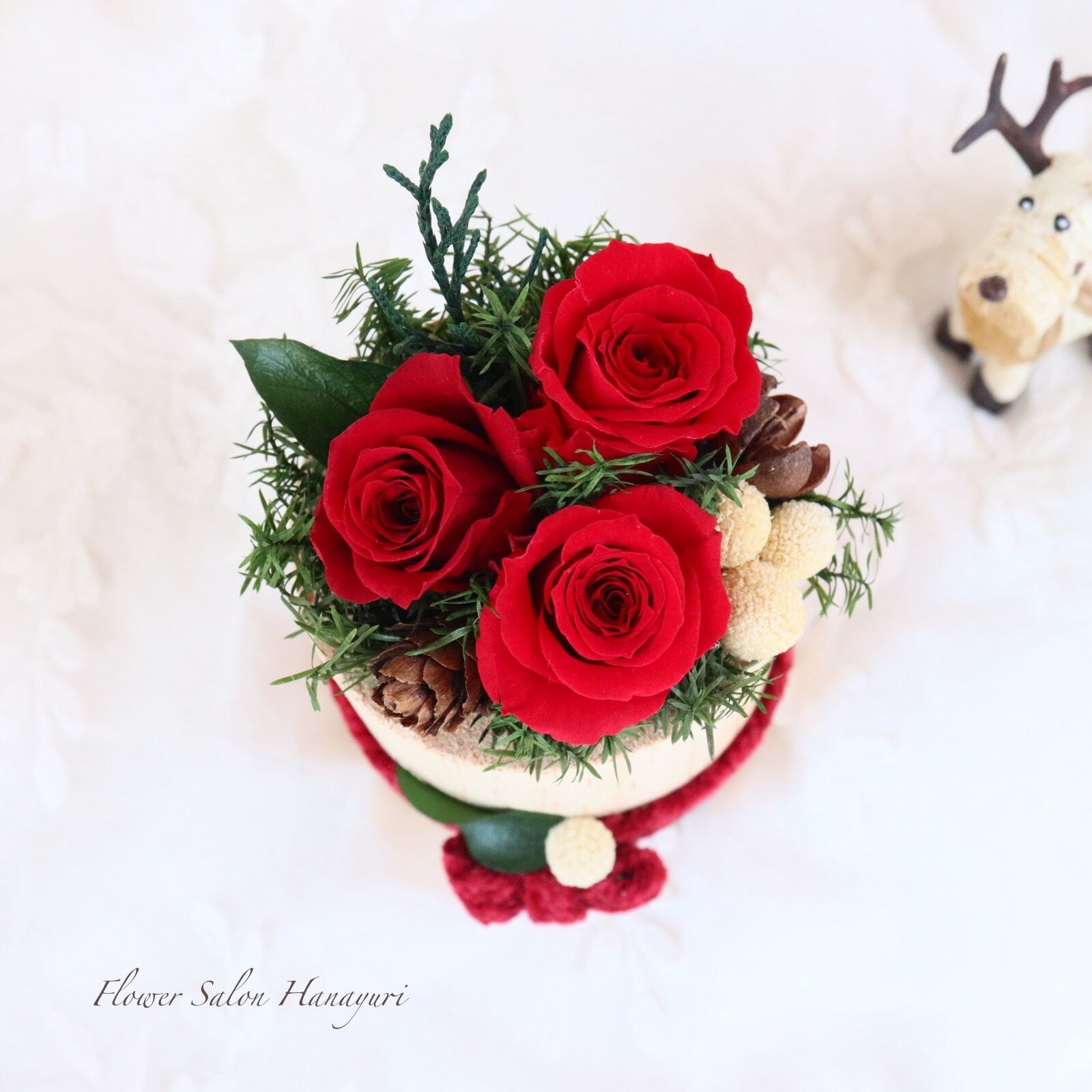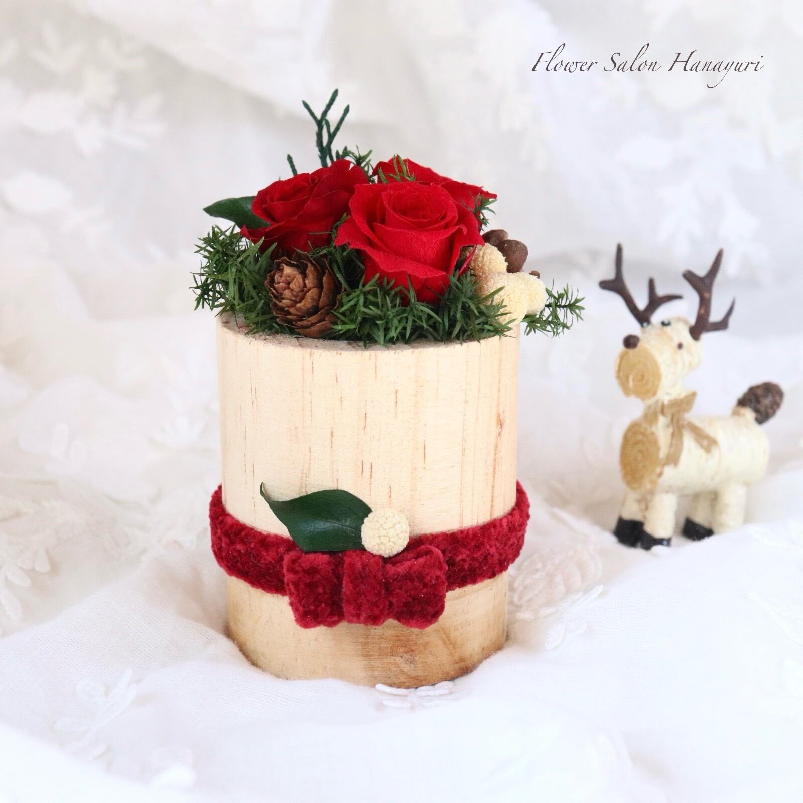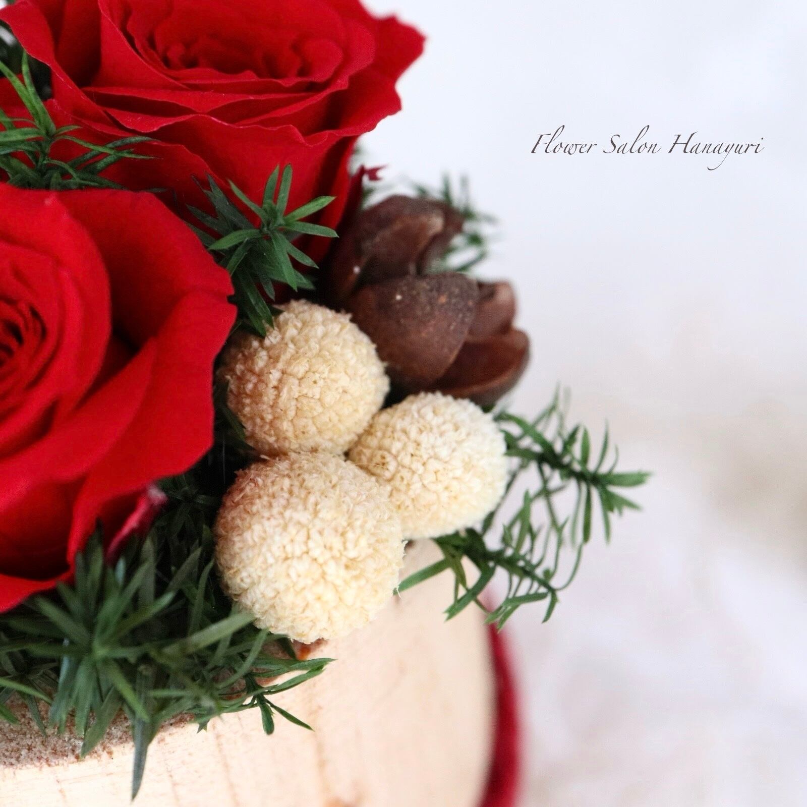 プリザーブドフラワー ウッドポット 赤い薔薇 クリスマス 記念日 プレゼント 花ギフト 贈り物 木の実