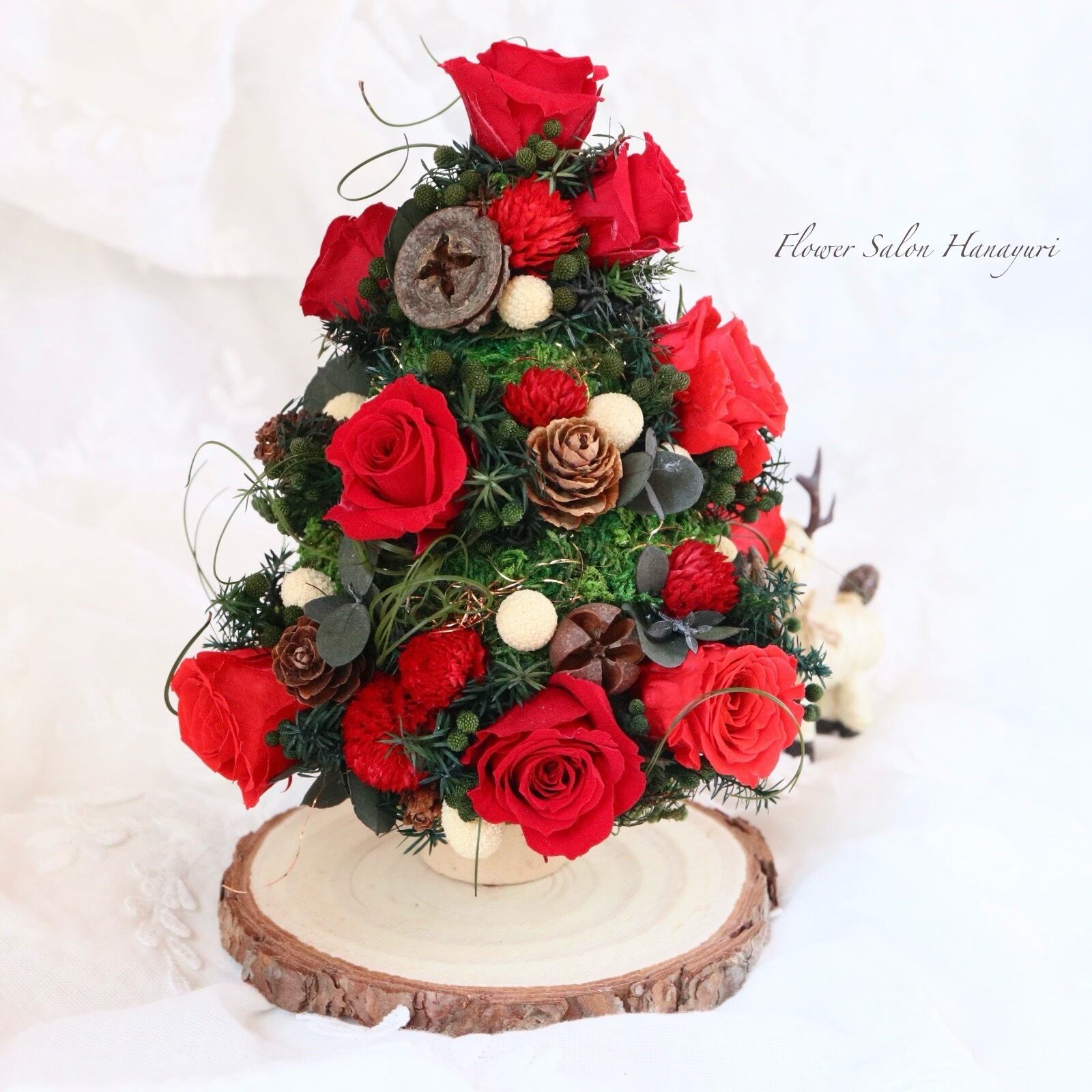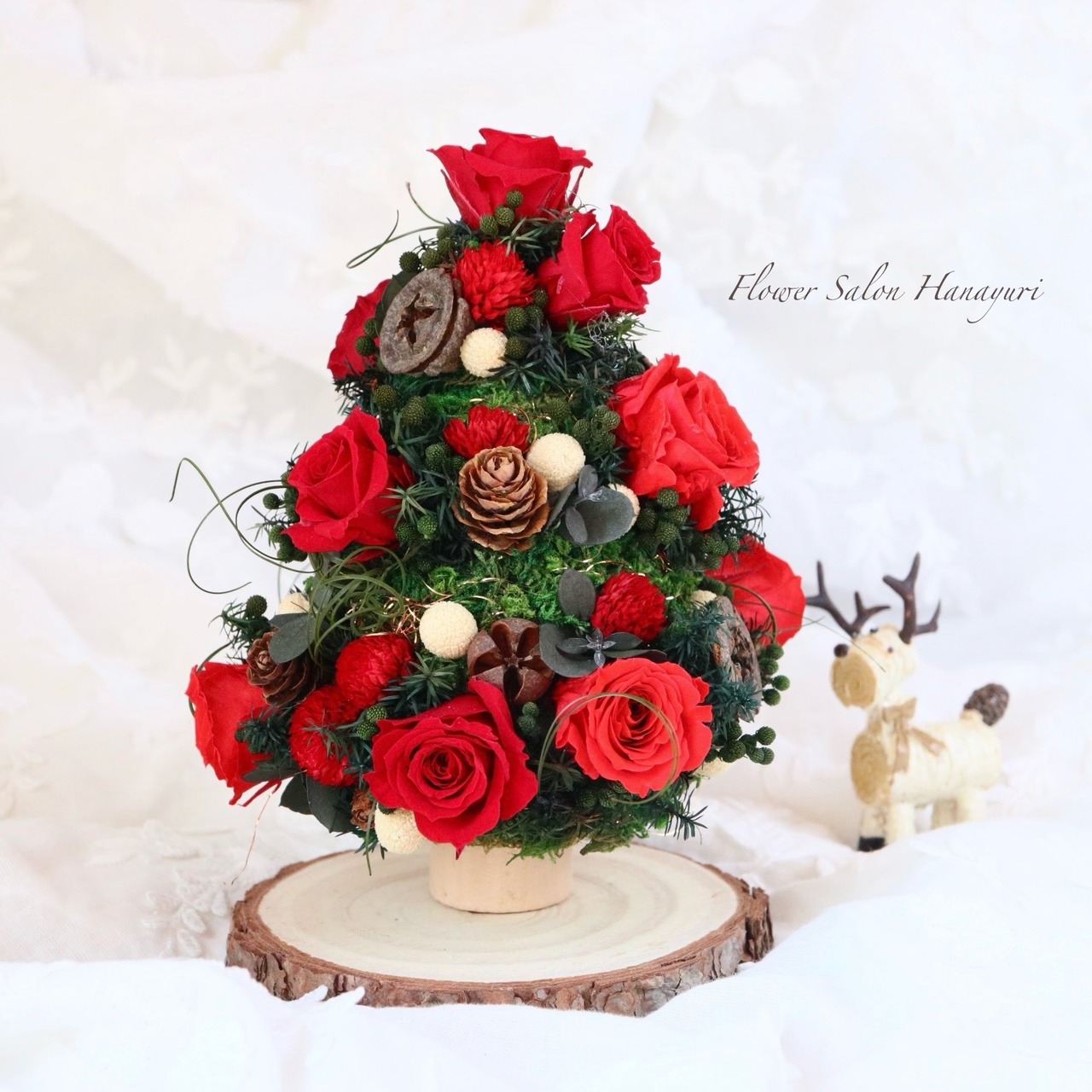 プリザーブドフラワー クリスマスツリー 螺旋 切り株 プレゼント 花ギフト インテリア 飾りつけ