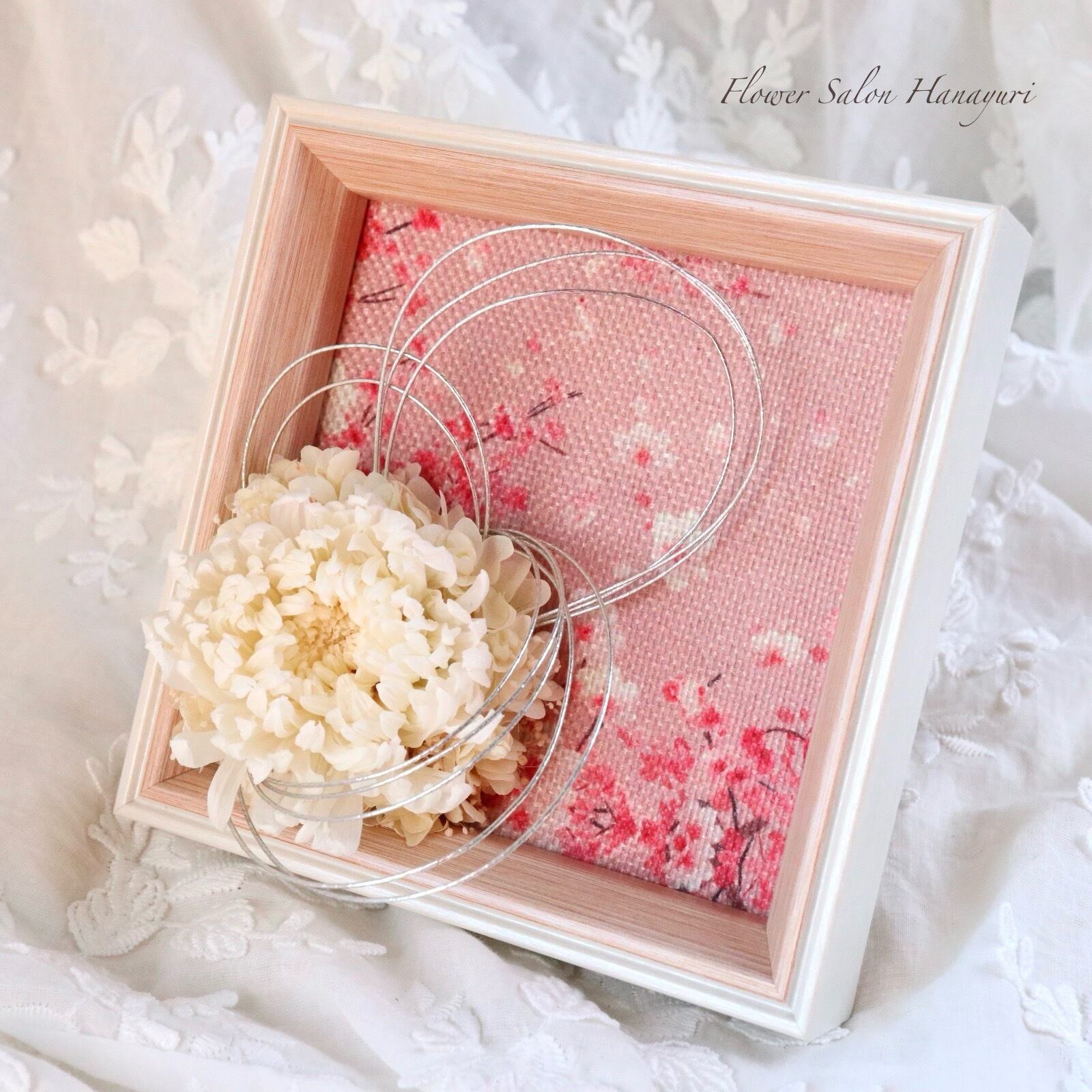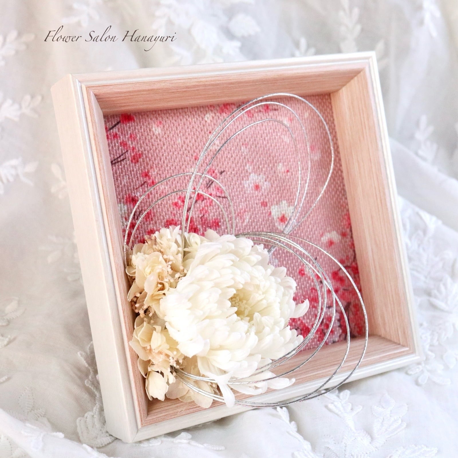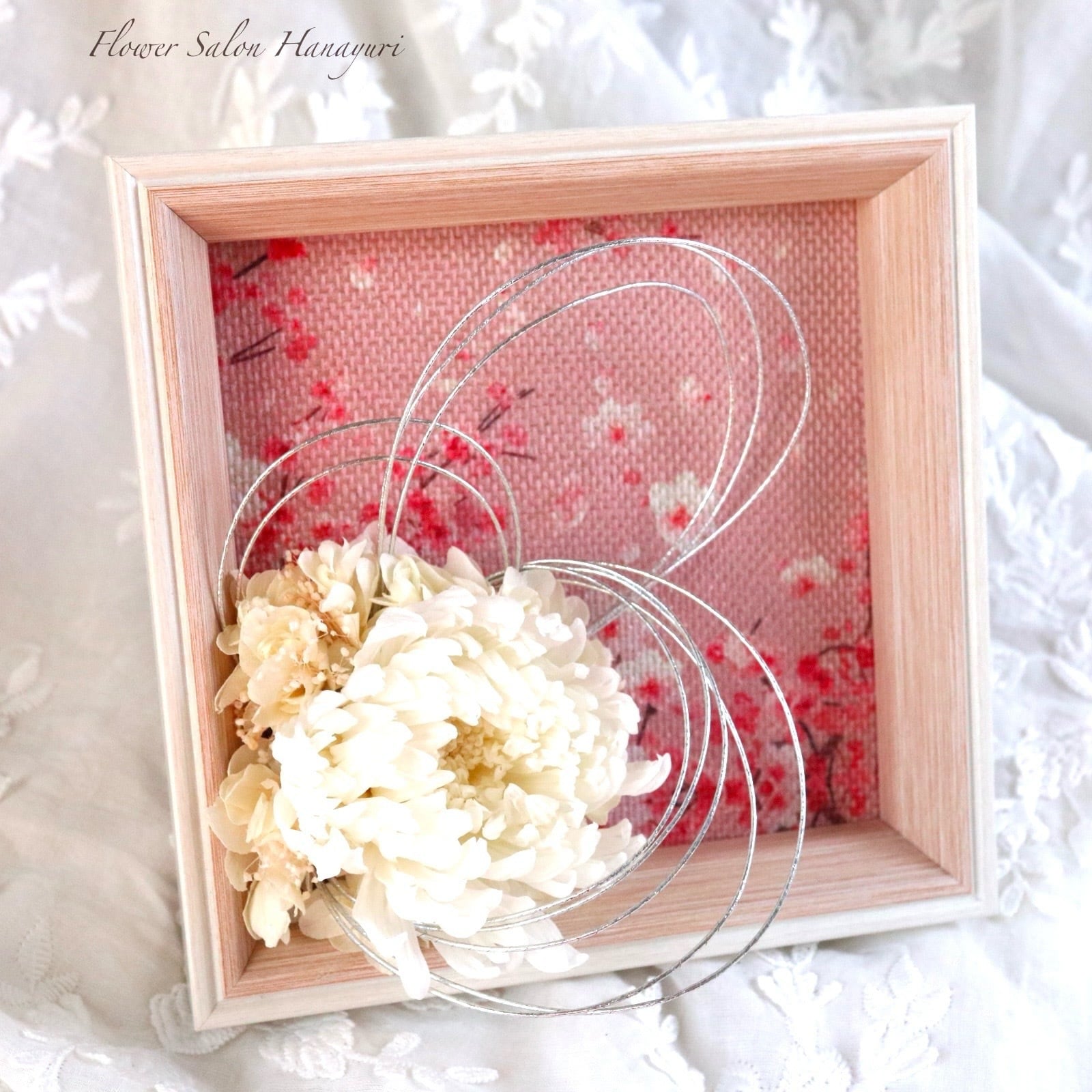 プリザーブドフラワー 輪菊 和風 アートフレームアレンジ 壁掛け 水引き お正月 和室 お祝い 節句 記念日 フラワーギフト 仏花