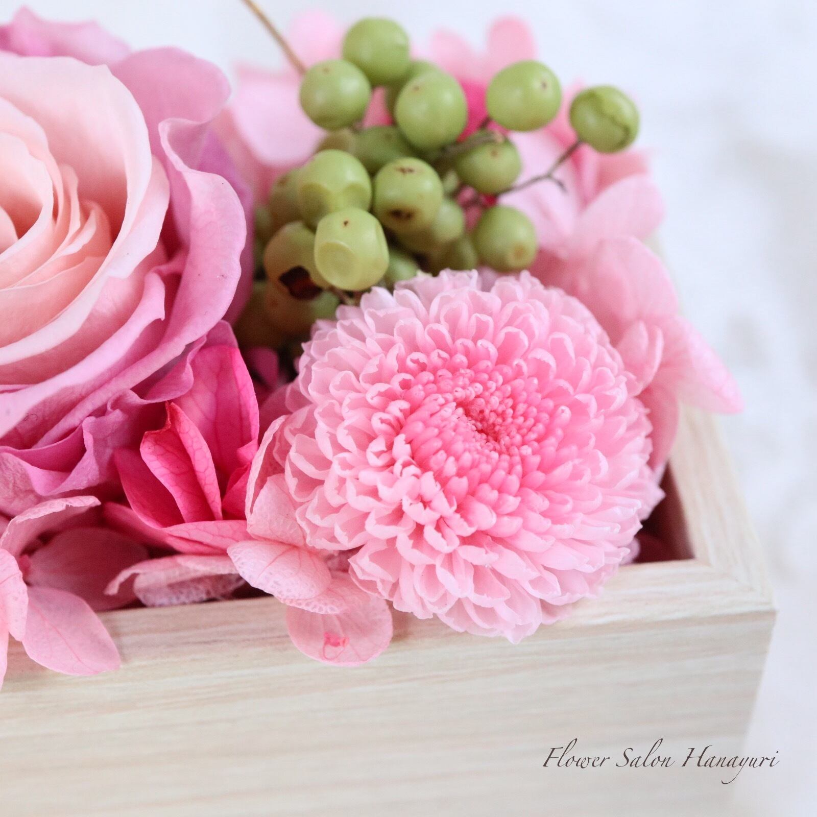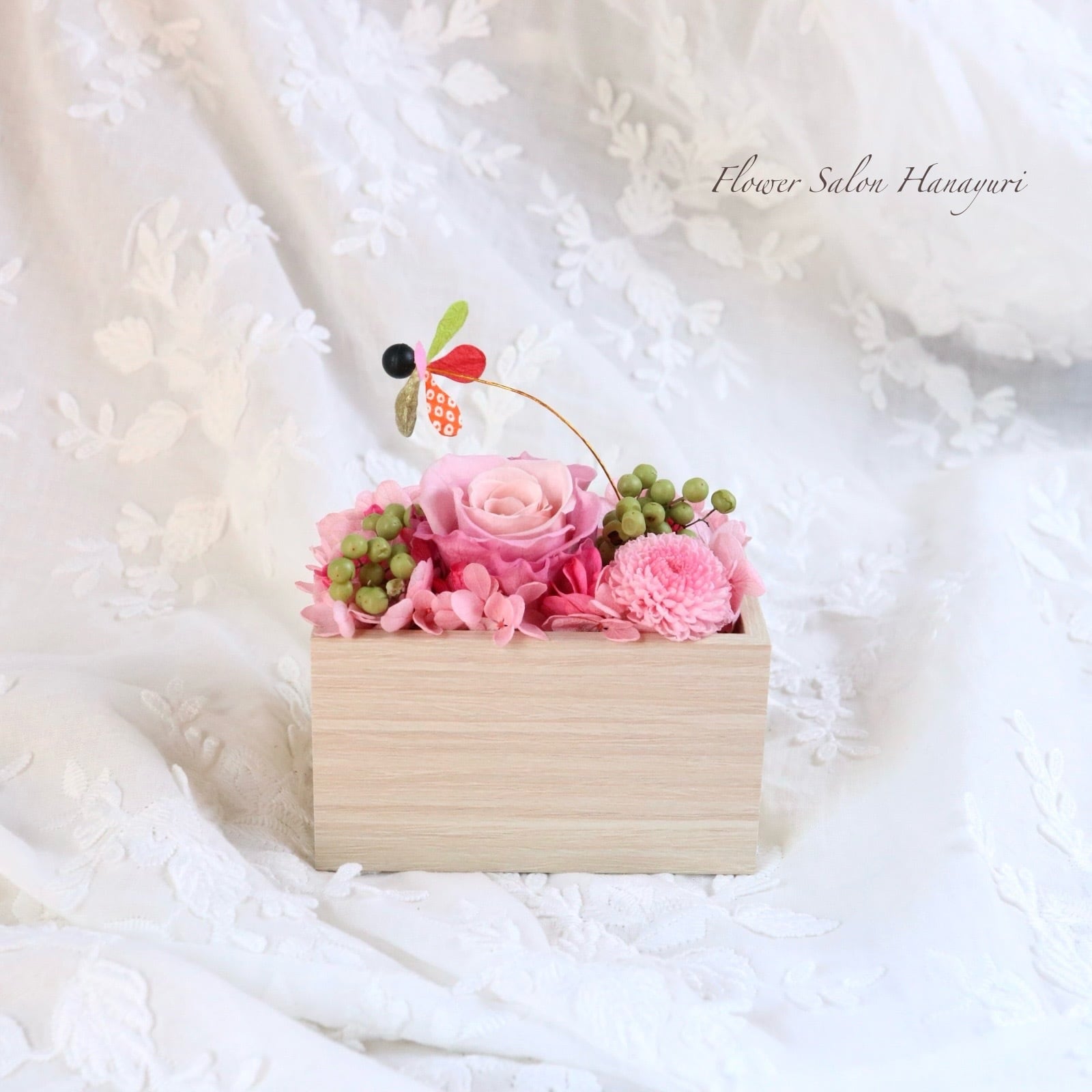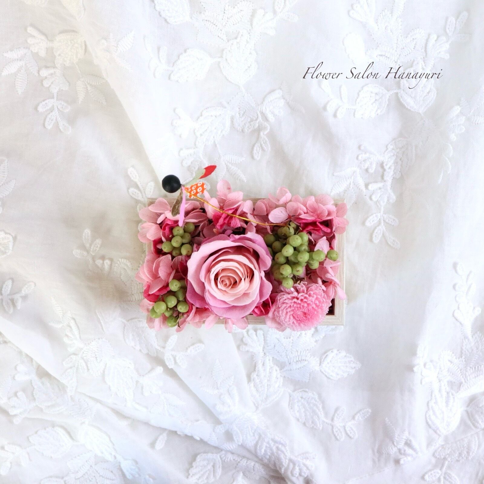 プリザーブドフラワー 和風 木製ボックスフラワー 薔薇 ポンポンマム ピンク 羽子板の羽 お正月 初正月 お祝い 結婚祝い 出産祝い 節句 フラワーギフト