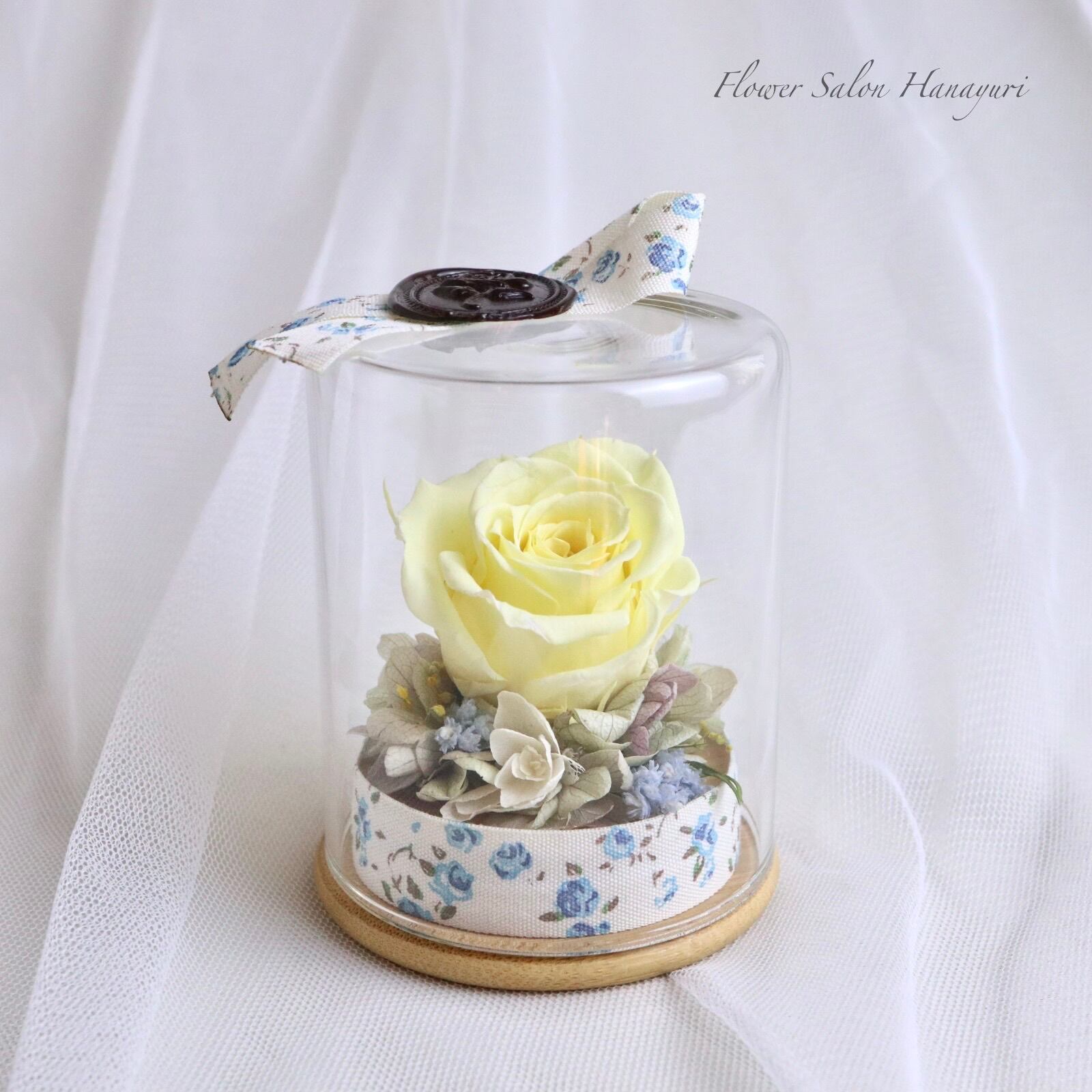 プリザーブドフラワー ボトルフラワー ガラスドーム ソフトイエロー 記念日 誕生日 お祝い フラワーギフト お礼 選べるお悔やみオプション