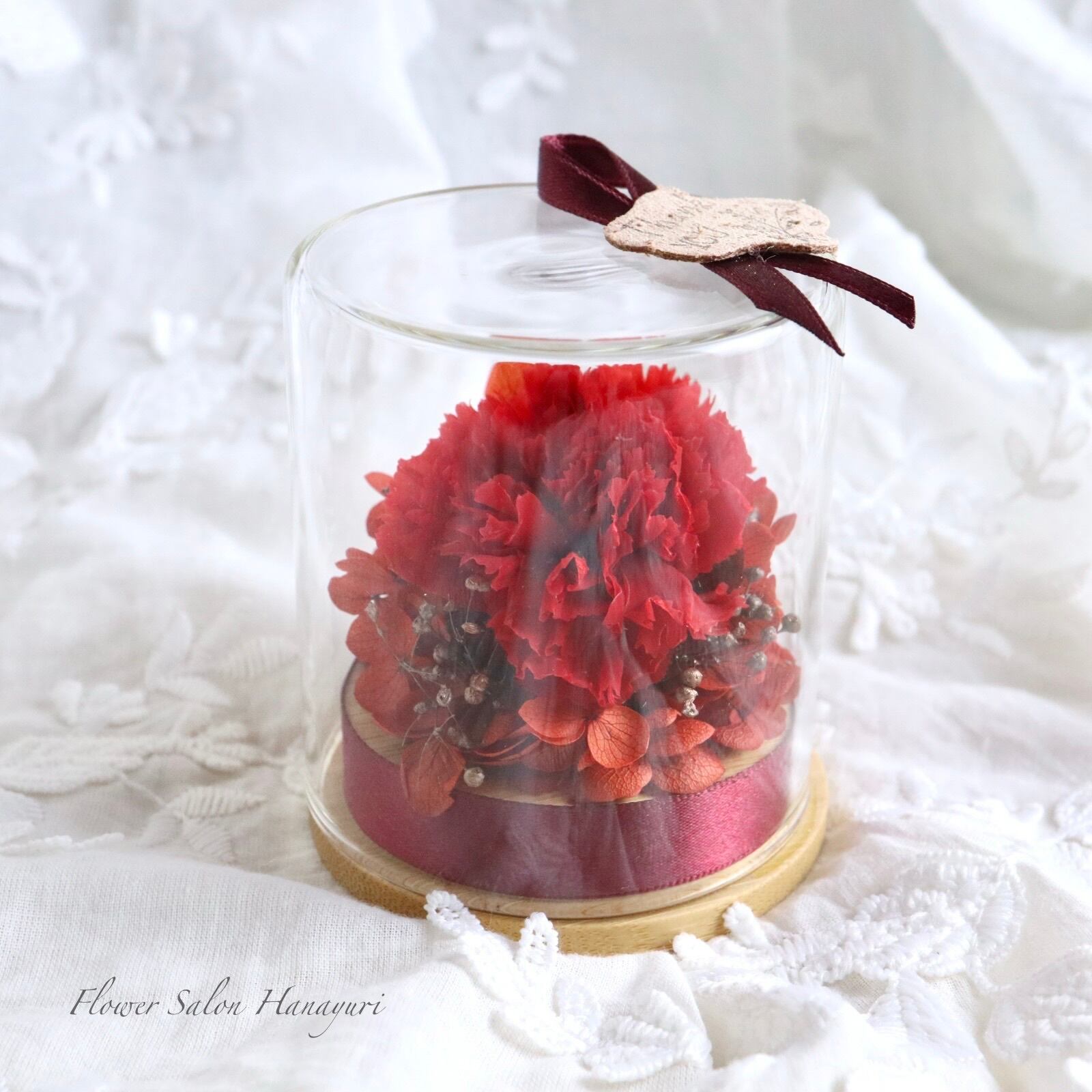 プリザーブドフラワー カーネーション 赤 ワインレッド マットゴールド 母の日 フラワーギフト プレゼント