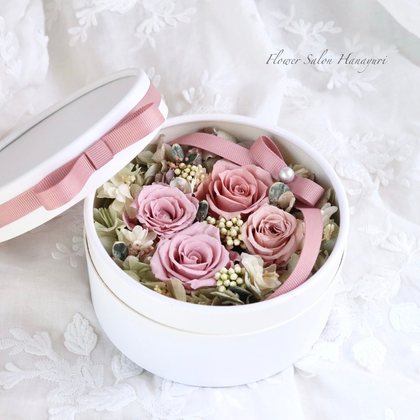 プリザーブドフラワー 丸ボックスアレンジ ベージュピンク 誕生日 記念日 贈り物 プレゼント お祝い 母の日 送別 退職祝い 開業祝い フラワーギフト