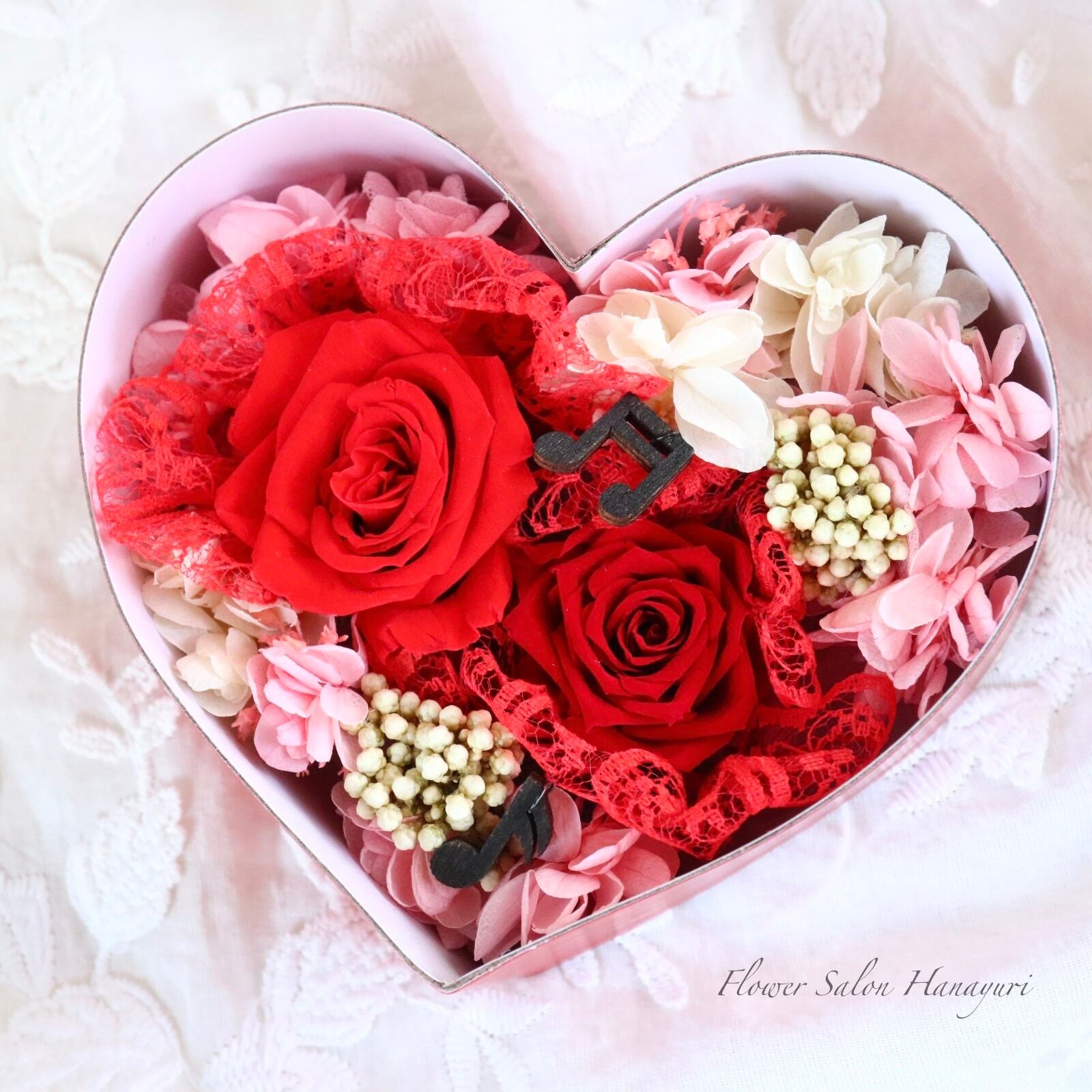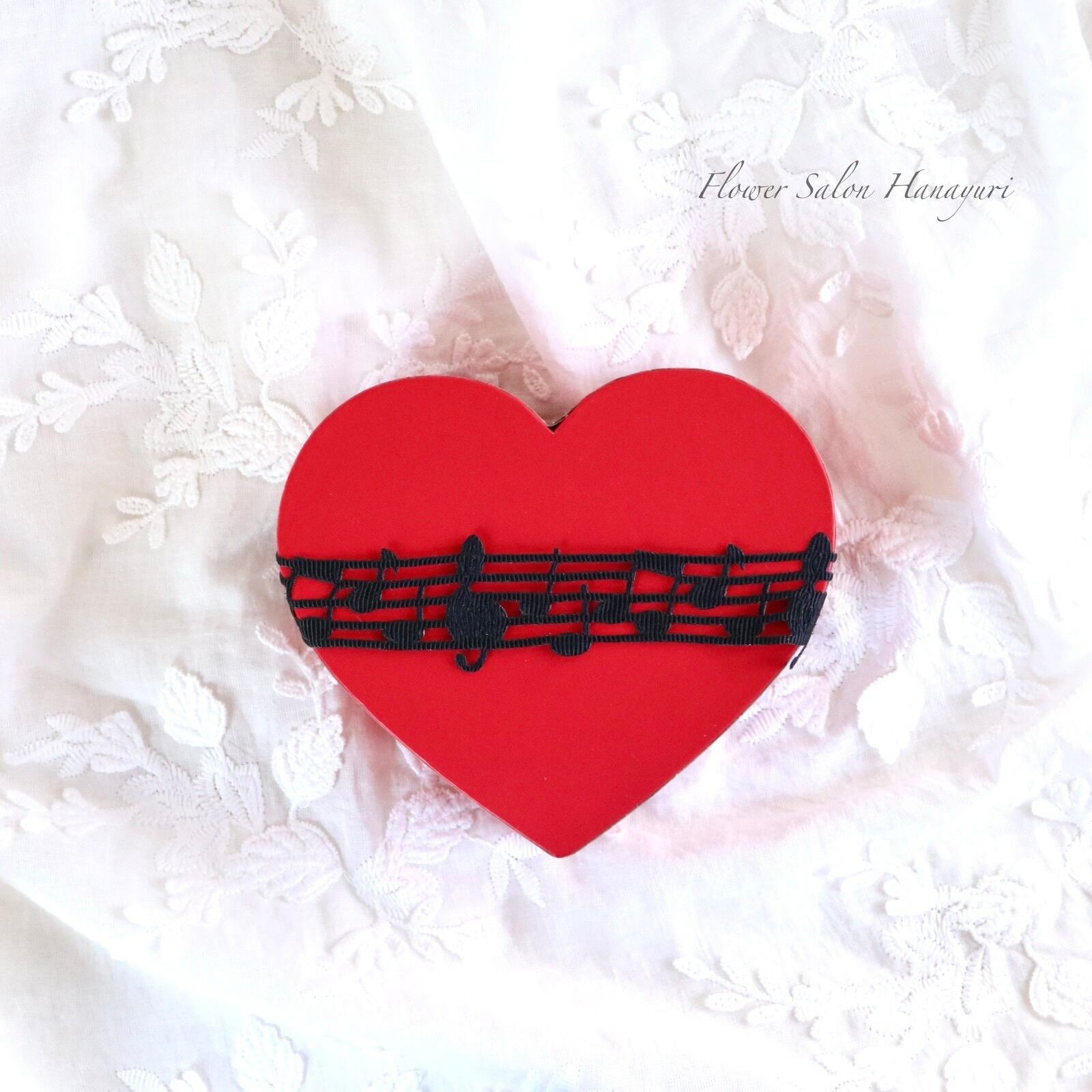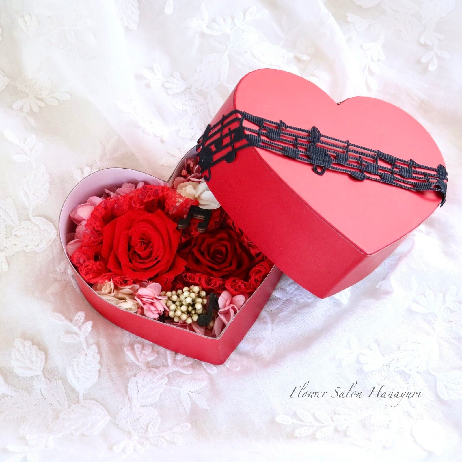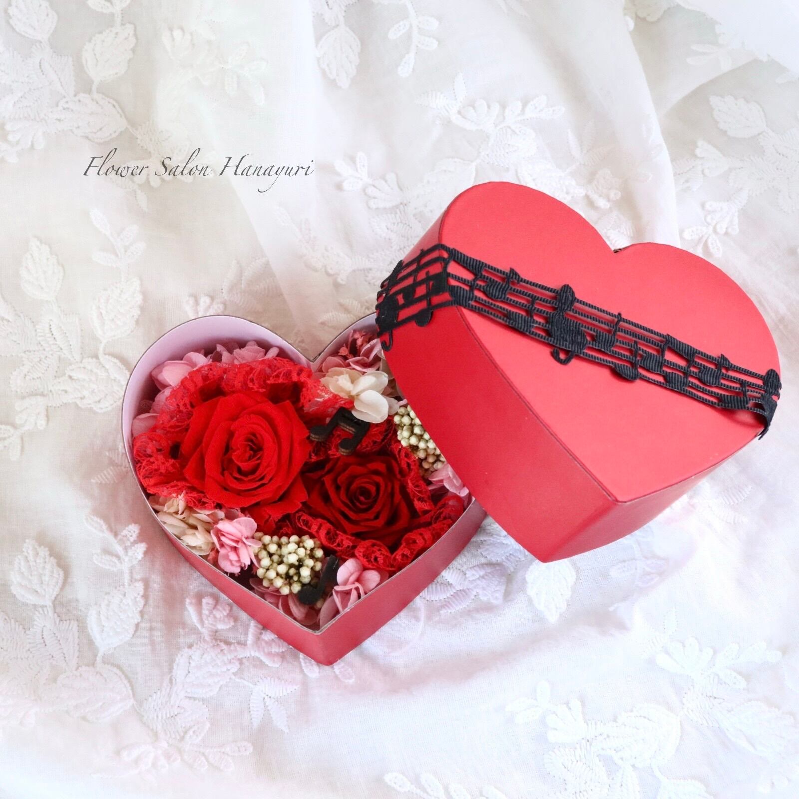 プリザーブドフラワー ハートボックスアレンジ 赤 音符 音楽 ピアノ 誕生日 記念日 贈り物 母の日 フラワーギフトプレゼント お祝い
