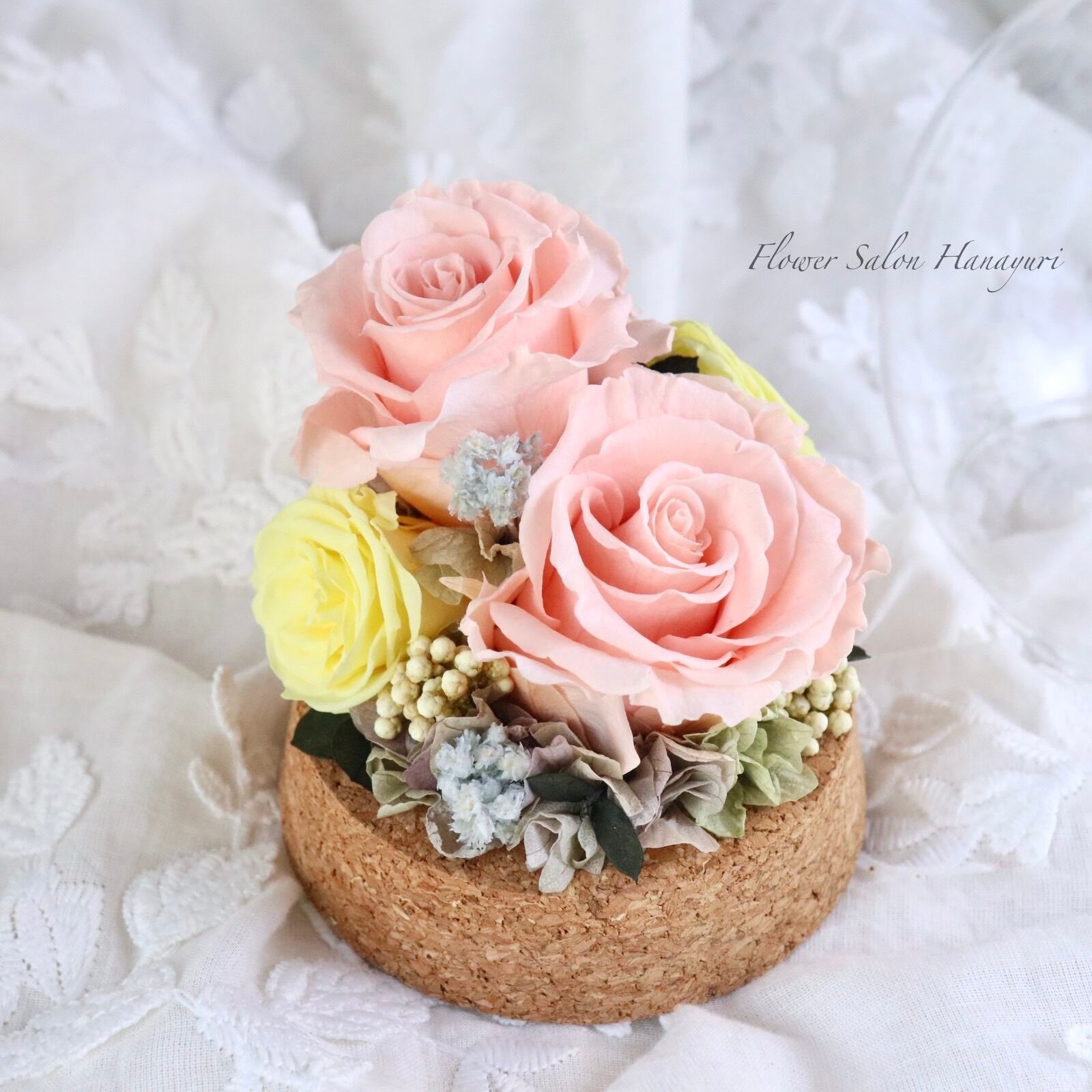 プリザーブドフラワー ガラスドーム ピンク×黄色 誕生日記念日 お祝い 母の日 フラワーギフト プレゼント