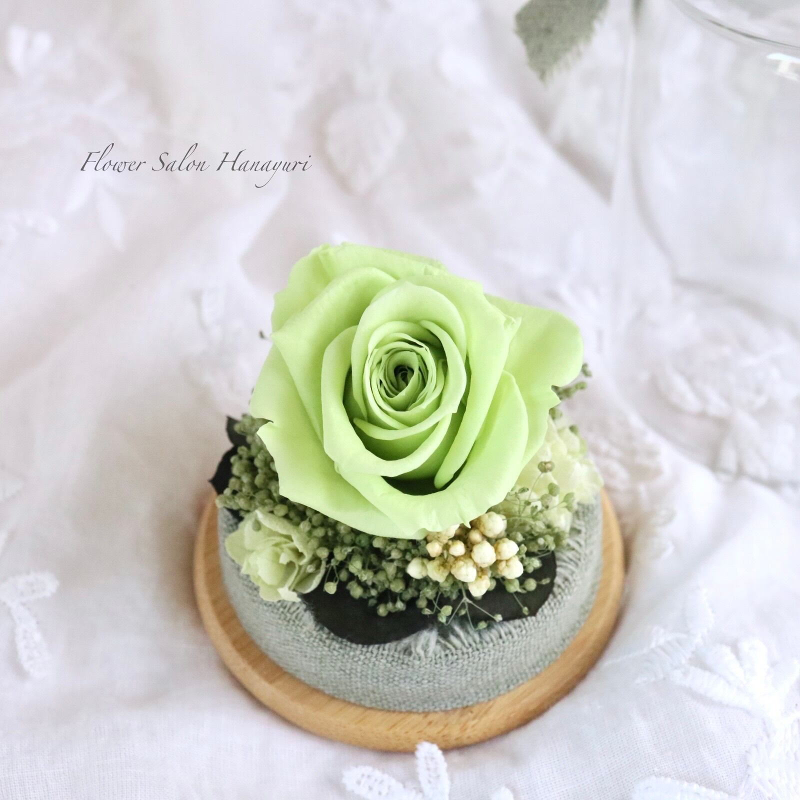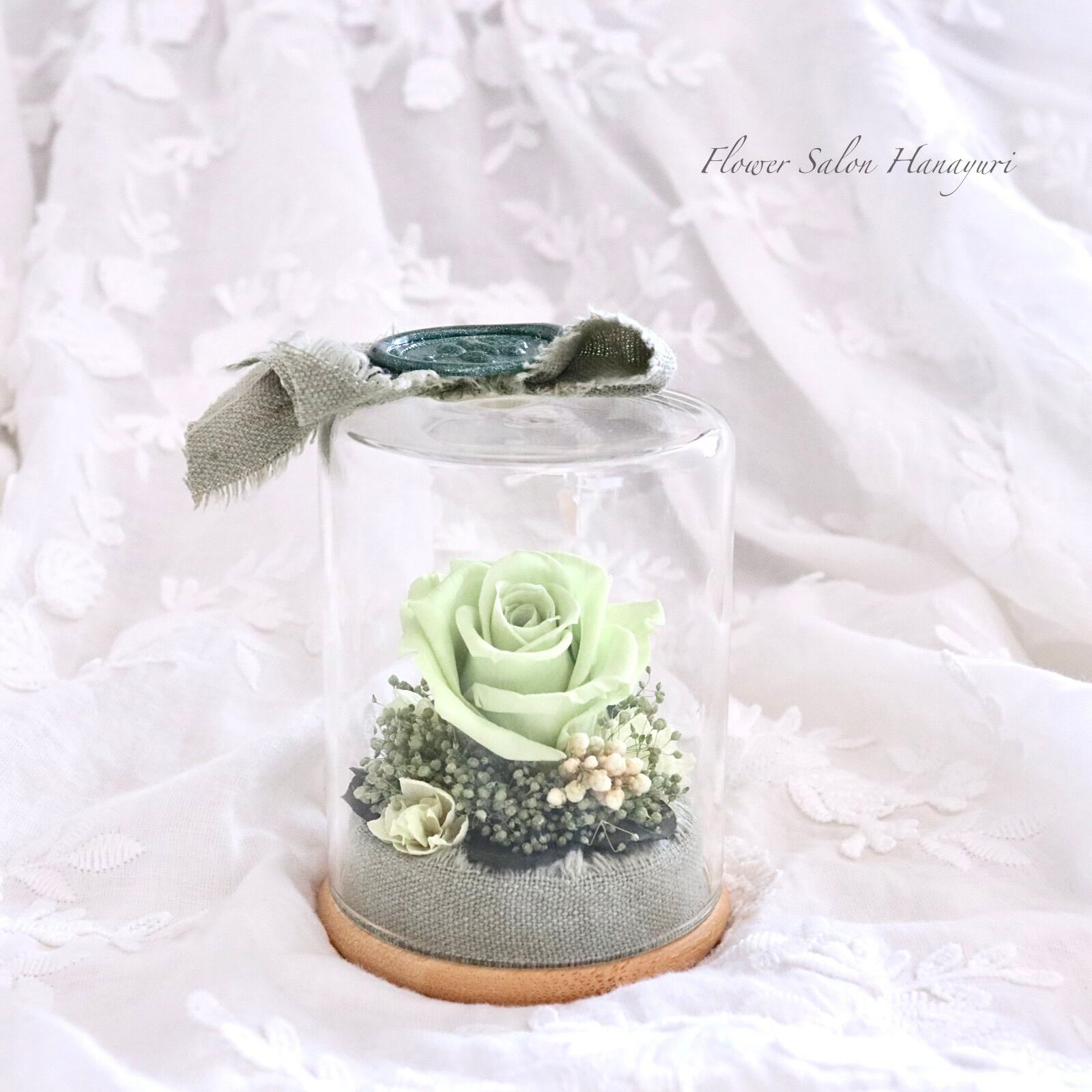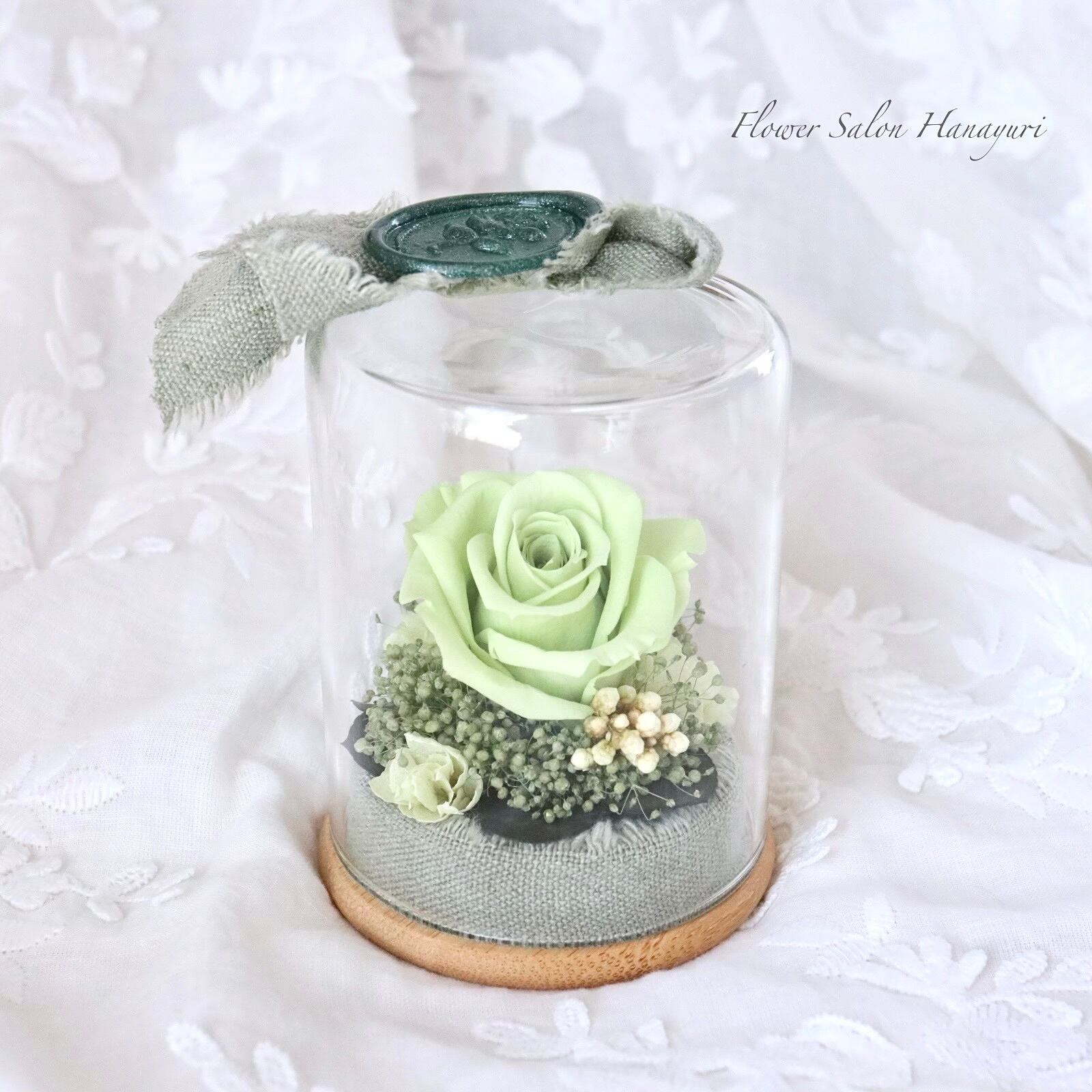 プリザーブドフラワー ボトルフラワー ガラスドーム マットグリーン 記念日 誕生日 お祝い フラワーギフト お礼 選べるお悔やみオプション