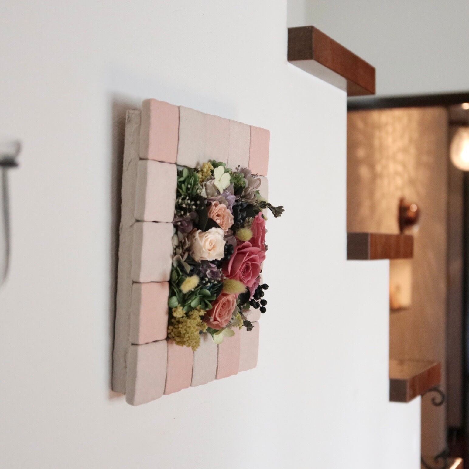 アートなモルタルレンガの壁飾り プリザーブドフラワー