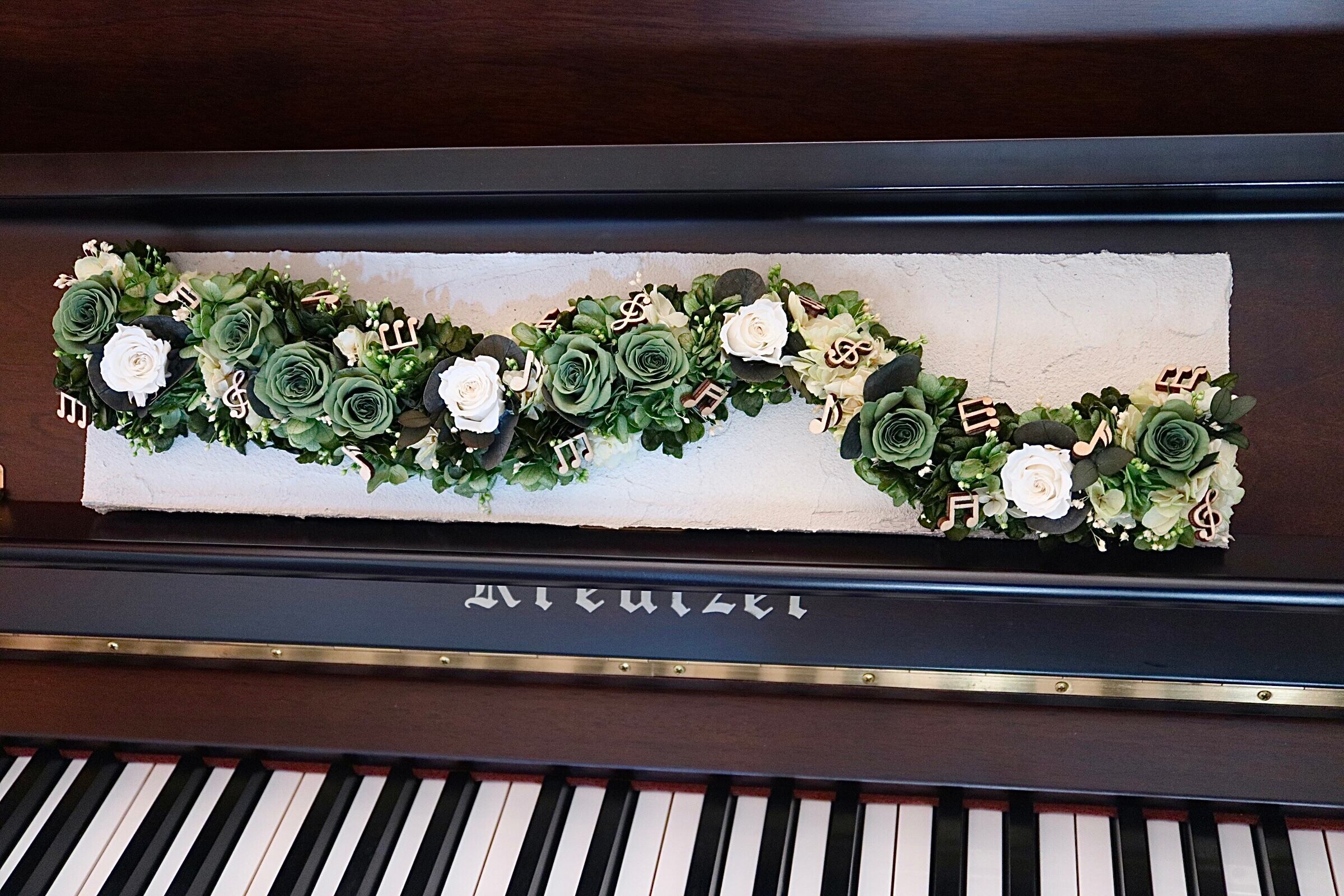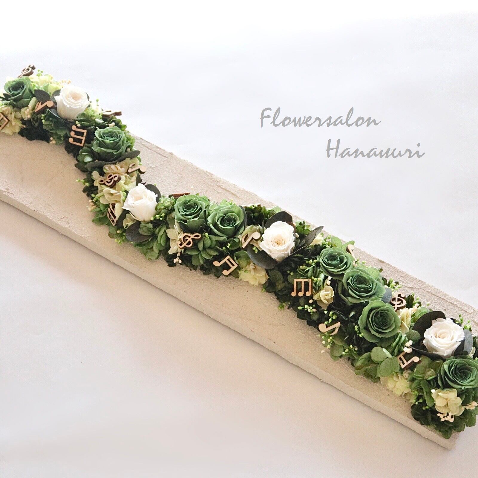 アートなモルタルパネルの壁飾り 流れる音色 プリザーブドフラワー