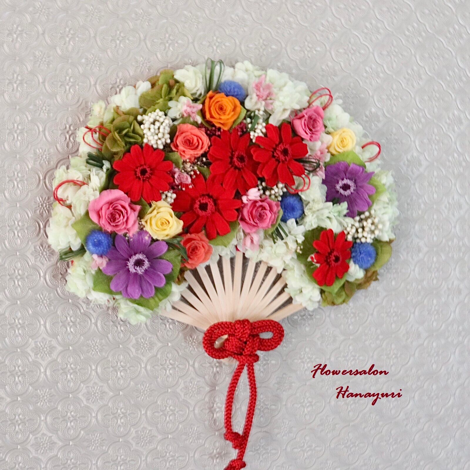カラフルな色合いが華やかで水引も使用しておりますのでおめでたい行事にもピッタリなアレンジメントです。