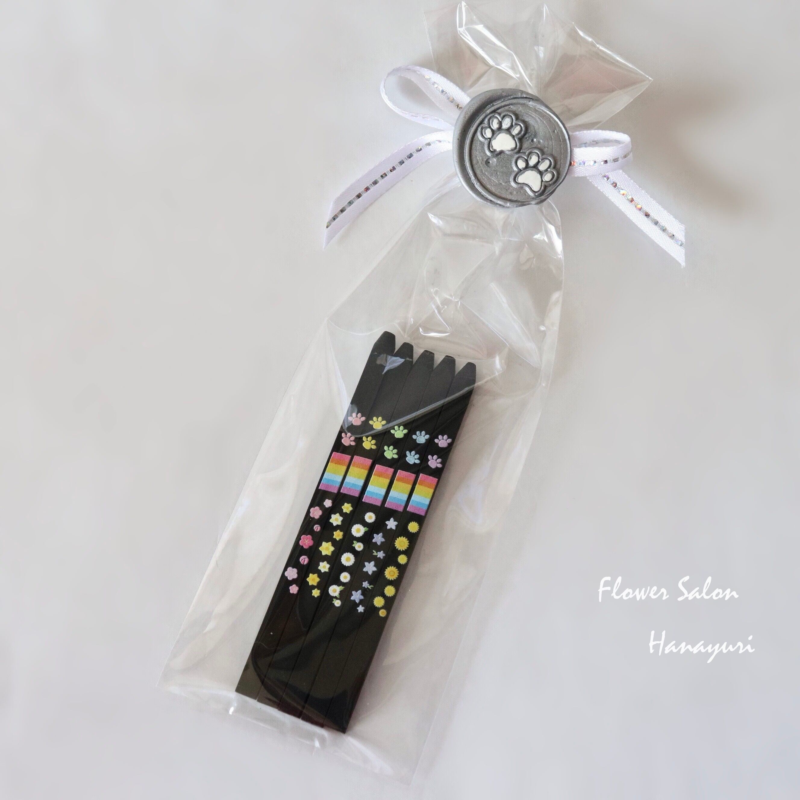 悲しみのお心に一瞬でも落ち着いた心が戻ってくるように願って、可愛い足跡と虹の柄のお線香をセットにいたしました。バニラベースの穏やかな香りです。