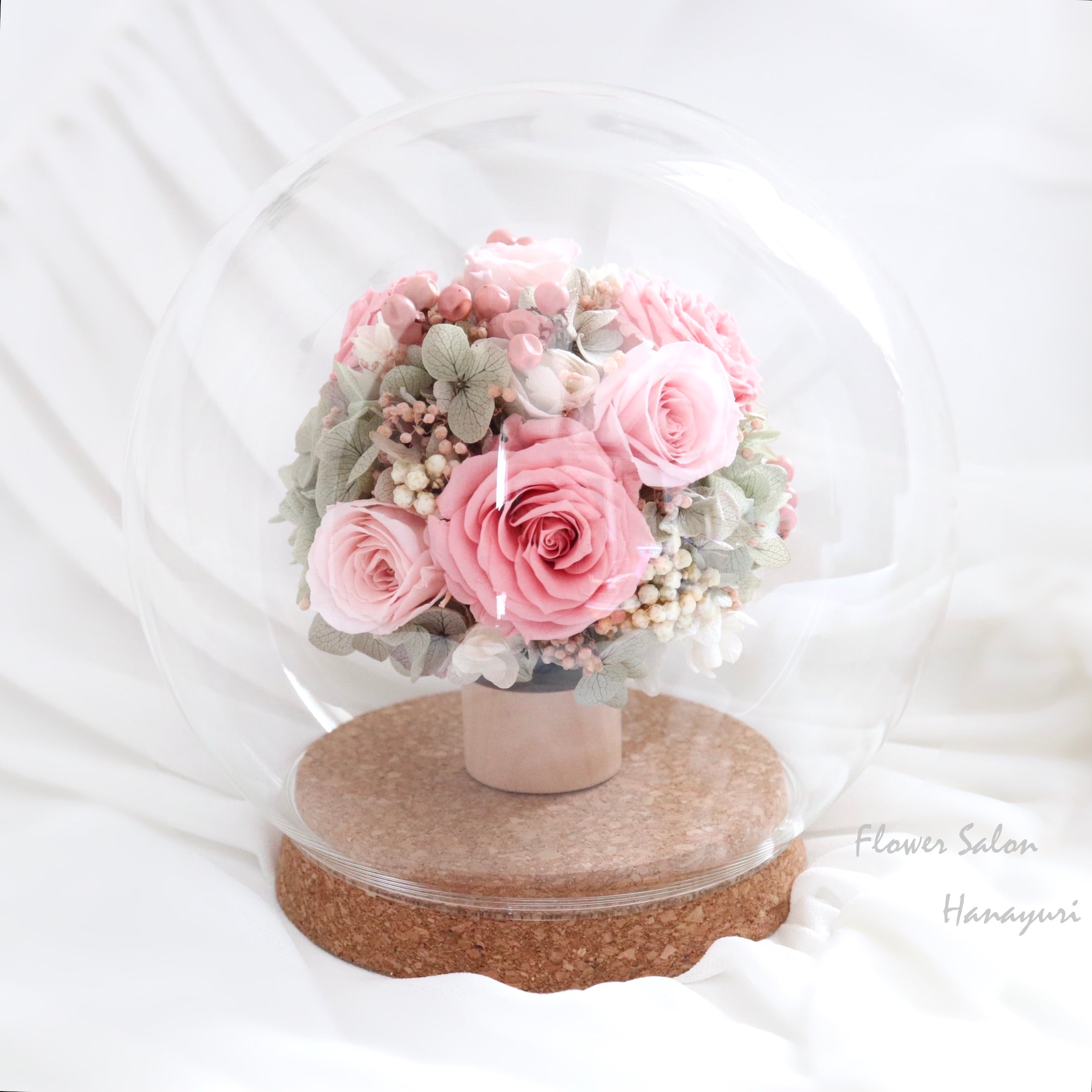 プリザーブドフラワー ボトルフラワー ガラスドーム大 ピンクトピアリー 個性的 かわいい ナチュラル 贈り物 プレゼント お祝い 記念日 誕生日