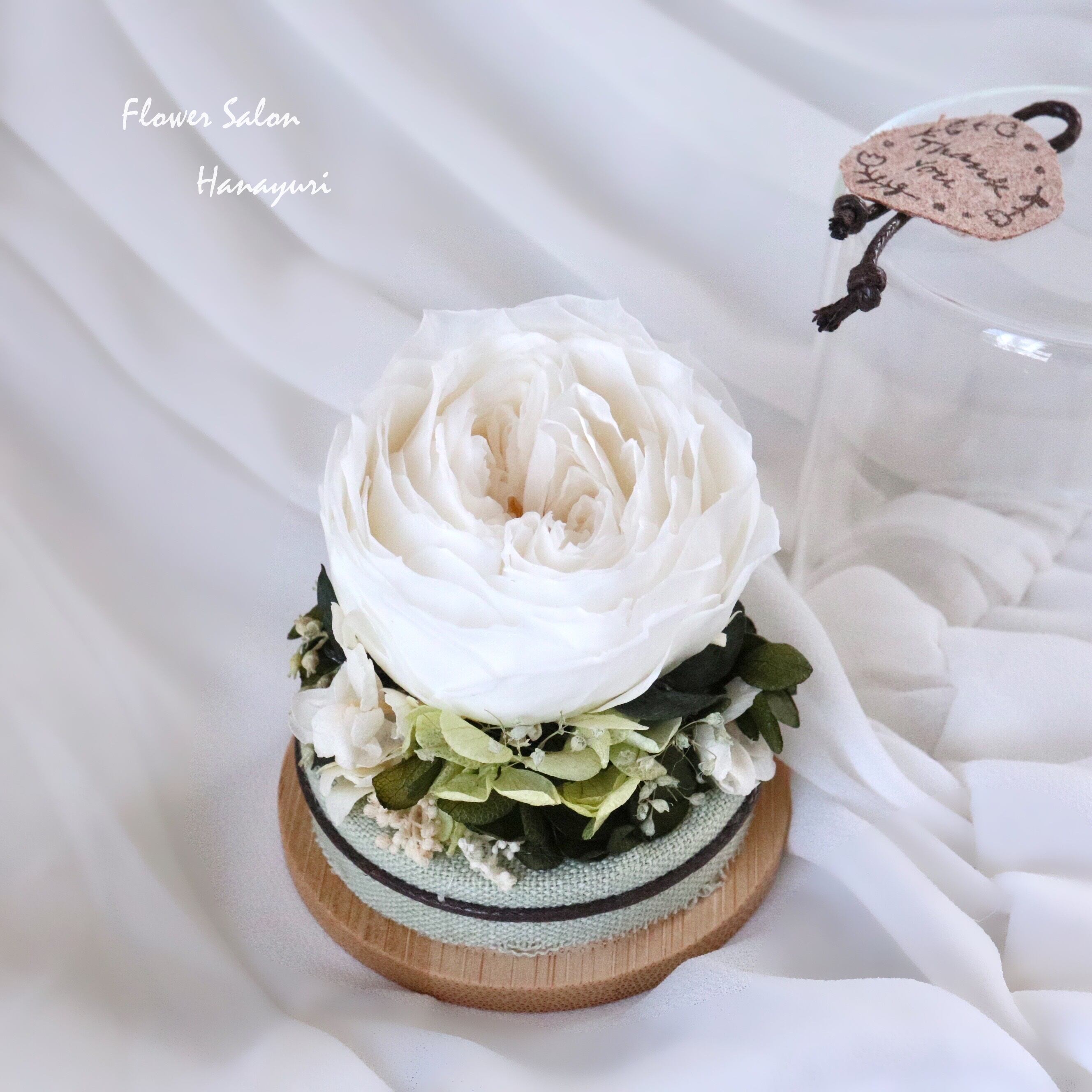 プリザーブドフラワー ガラスボトルフラワー オールドローズ白 選べるお悔やみセット プチギフト 記念日 お礼 お祝い 花ギフト 誕生日 お供え